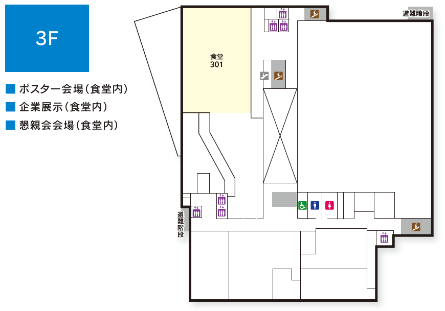 参加受付後、3階ポスター発表会場内の「演者・座長受付」にお越しください。